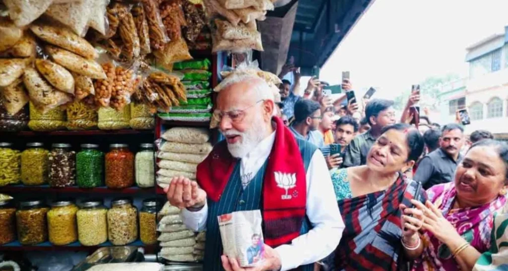 ছোট্ট এক দোকানে গিয়ে মোদি বলেলেন, ‘ভাই, ঝালমুড়ি খাওয়ান তো’