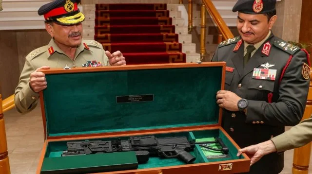জাতিসংঘের একটি বিশেষজ্ঞ প্যানেলের প্রতিবেদনে বলা হয়েছে, ডিসেম্বরে আসিম মুনিরের বেনগাজি সফরের সময় পাকিস্তান হাফতারের লিবিয়ান আরব আর্মড ফোর্সেস (এলএএএফ)-কে অন্তত দুটি আগ্নেয়াস্ত্র দিয়েছিল। এই অস্ত্রগুলো চোখে দেখার সিস্টেমের সঙ্গে যুক্ত। এতে ক্যামেরা ও ভাঁজ করা স্ক্রিন রয়েছে, যা অস্ত্রের সামনের অংশকে ৯০ ডিগ্রি কোণে ডানে বা বামে ঘোরানোর সুযোগ দেয়। ফলে ব্যবহারকারী যেকোনও কোণ থেকে লক্ষ্যবস্তুতে আঘাত করতে পারেন।