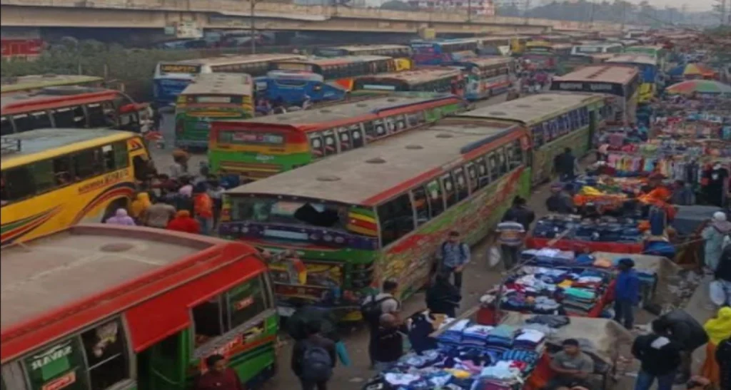 সরেজমিনে দেখা যায়, হেমায়েতপুর, আশুলিয়া, বিশমাইল, নবীনগর, বাইপাইল, টঙ্গী ও শ্রীপুরের বিভিন্ন বাসস্ট্যান্ডে শ্রমিকদের দীর্ঘ সারি। অনেককে ঘণ্টার পর ঘণ্টা বাসের অপেক্ষায় দাঁড়িয়ে থাকতে দেখা গেছে। ছুটি উপলক্ষে এ যাত্রা অনেকটাই ঈদের সময়ের ভিড়ের সঙ্গে তুলনীয় হয়ে উঠেছে।