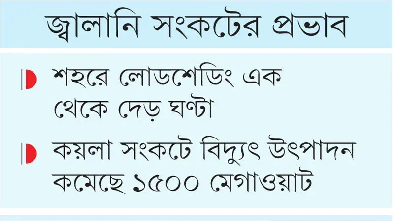 সরকারি ও সংশ্লিষ্ট সূত্রগুলোর তথ্যমতে, দেশে লোডশেডিং এখন দুই হাজার মেগাওয়াট ছাড়িয়ে গেছে। উৎপাদন সক্ষমতা চাহিদার দ্বিগুণ হলেও জ্বালানি সংকটের কারণে সরকার তা কাজে লাগাতে পারছে না। গ্যাস ও জ্বালানি তেলের চলমান সংকটের সঙ্গে নতুন করে যোগ হয়েছে কয়লার স্বল্পতা। এতে বড় কয়লাভিত্তিক কেন্দ্রগুলো থেকেই দিনে প্রায় ১ হাজার ৫০০ মেগাওয়াট বিদ্যুৎ কম আসছে। পাশাপাশি নেপাল থেকে বিদ্যুৎ আসাও বন্ধ রয়েছে।