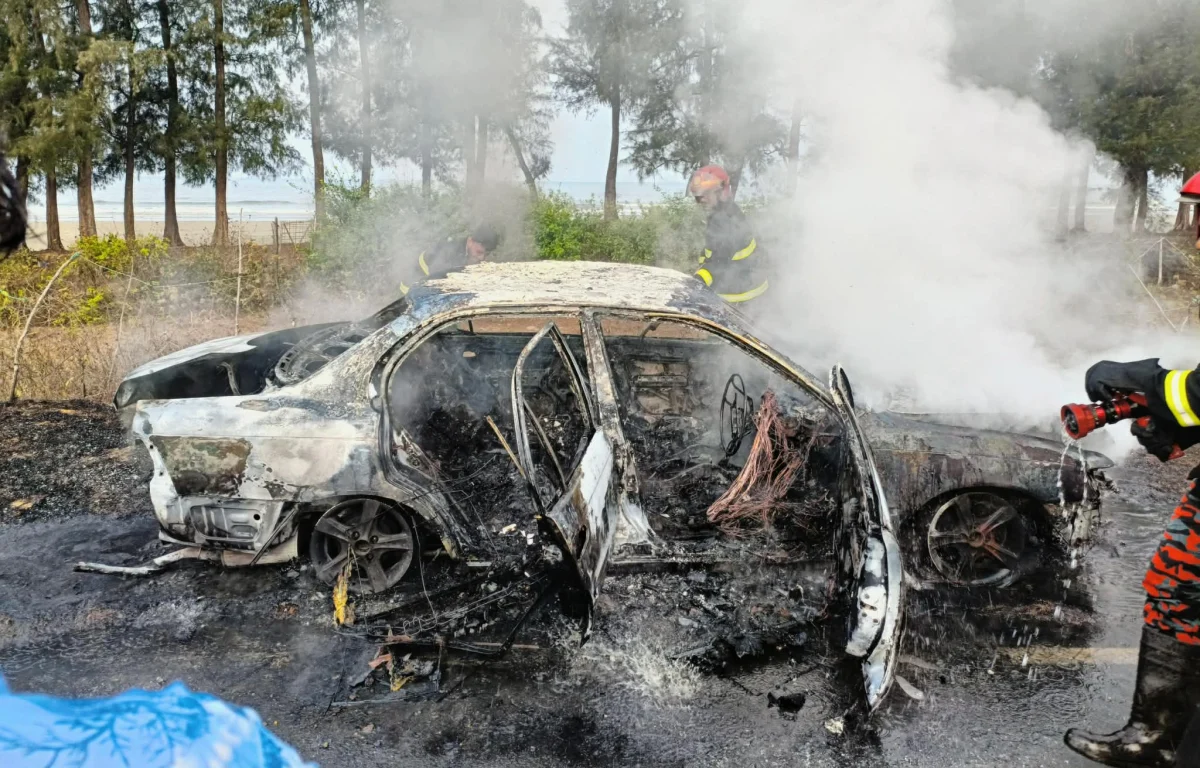 টেকনাফ মেরিন ড্রাইভে যাত্রীবাহী চলন্ত গাড়ি ভস্মিভূত