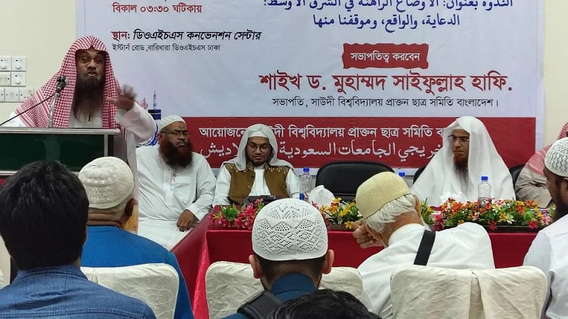 সৌদি বিশ্ববিদ্যালয় প্রাক্তন ছাত্র সমিতির সভাপতি ড. মুহাম্মাদ সাইফুল্লাহ সেমিনারে সভাপতিত্ব করেন।